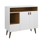 Aparador Buffet Cozinha 2 Portas Nicho Moderno com Puxador em Couro Branco/Freijo