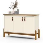 Buffet Armário Organizador Aparador Balcão Sonetto 3 Portas Puxador em Couro p/Sala Jantar Estar - Offwhite/Freijó