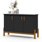 Buffet Aparador Balcão Preto 4 Portas Sonetto Puxador em couro p/ Sala Jantar Estar - Preto
