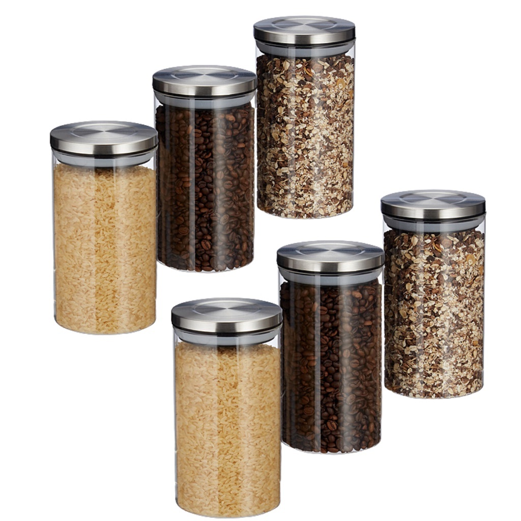 Kit pote de vidro com tampa de inox redondo 6 pçs - Oikos