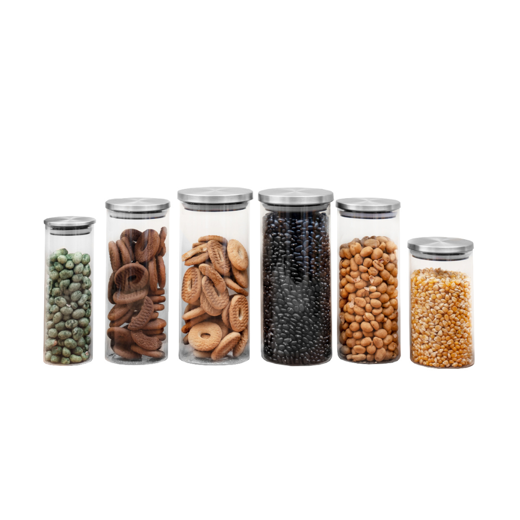 Kit pote de vidro com tampa de inox redondo 7 pçs - Oikos