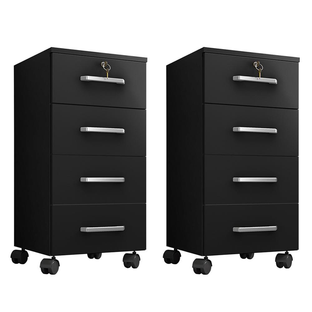 Kit Gaveteiro para Escritório com Chave e Rodízios 4 Gavetas Gávea Preto