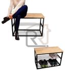 Banco Sapateira Estilo Industrial (tam G) - 2 Prateleiras de Ferro e Assento de Madeira
