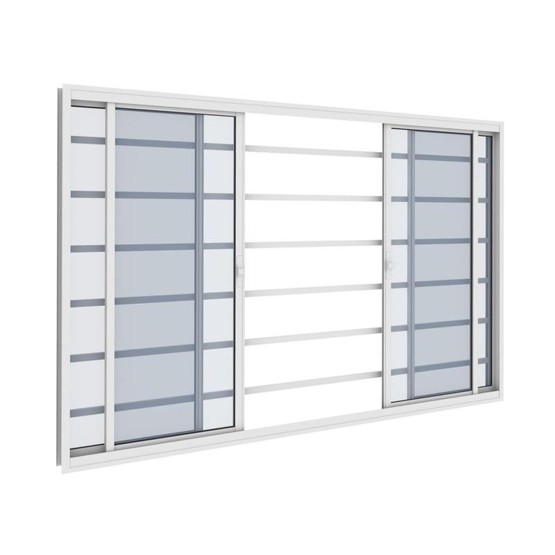 Janela Vitro 4 Folhas 1,50m x 1m Alumínio Branco Com Grade Horizontal - Vitrolar