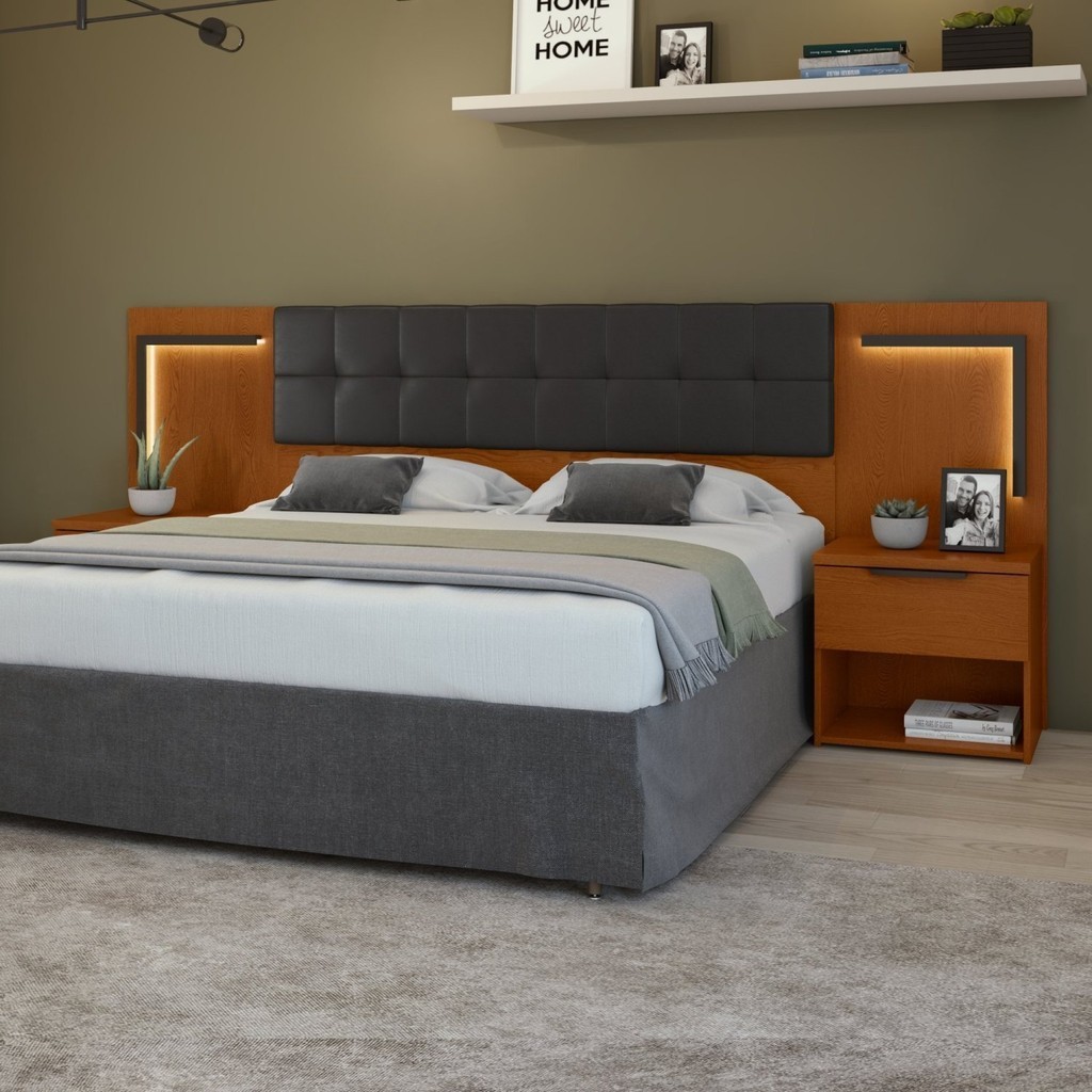 Cabeceira Casal / Queen 160cm 2 Mesas de Cabeceiras com Led Calitan Frassino/Preto Fosco