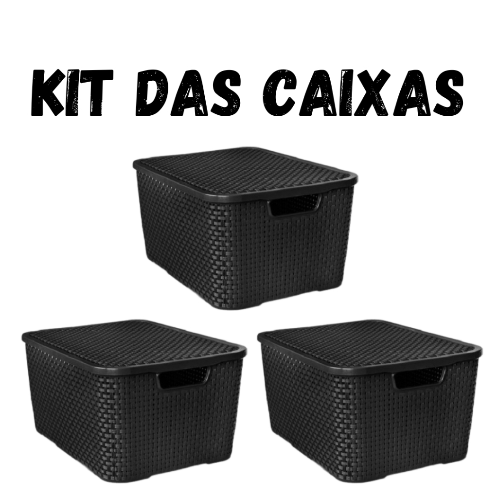 Kit Caixas 7 Litros Rattan de Organização com Tampa, Cestos Multiuso, Banheiro, Quarto, Cozinha, Lavanderia, Escritório, Garagem.