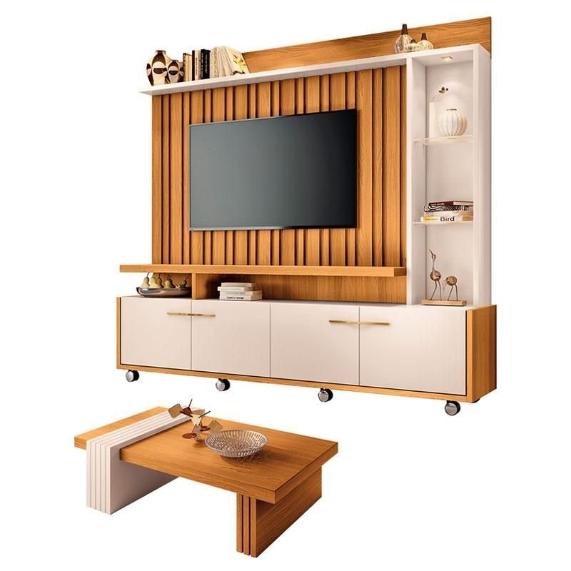 Estante Home Theater Titan e Mesa de Centro Luna Cinamomo Off White – Hb Móveis