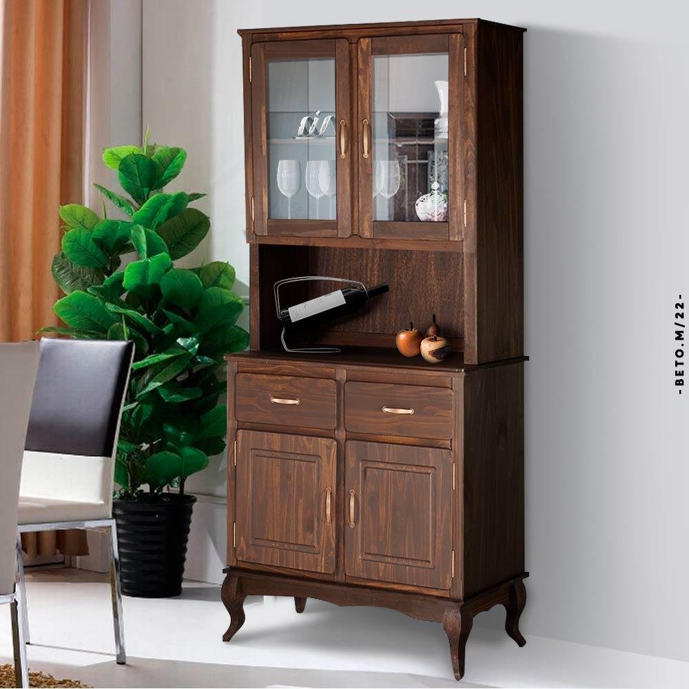 Armário Dispensa 2 Portas em Vidro Madeira Maciça Imbuia Jm Móveis