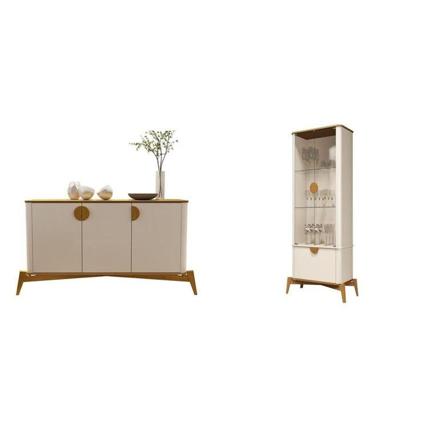 Conj Cristaleira e Buffet Buriti com Os Cantos Curvos, Puxador e Pés em Madeira Maciça