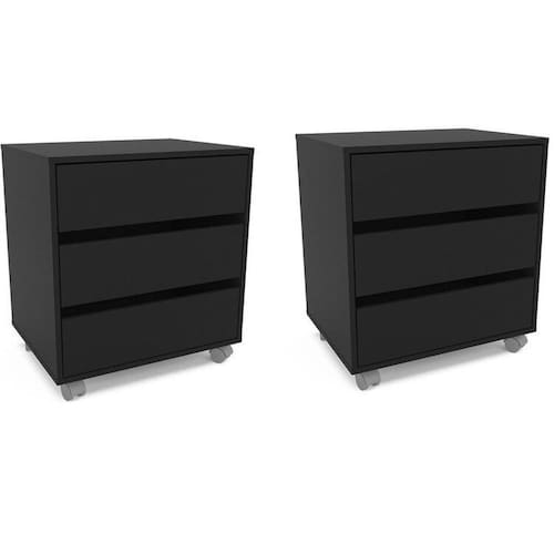 Kit 2 Gaveteiros Mauá 600mm 3 Gavetas com Rodízios Preto