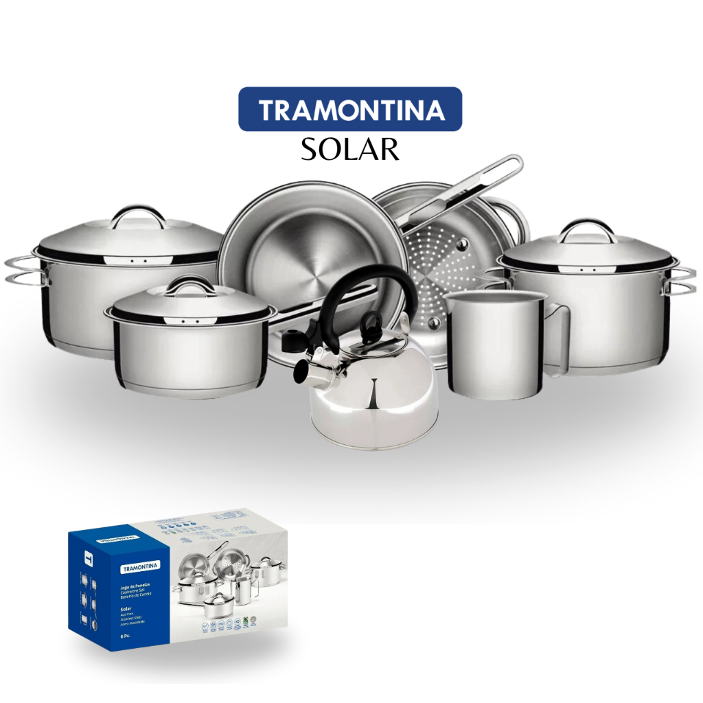 Jogo de Panelas Tramontina Solar Aço Inox Fundo Triplo Indução 6 peças