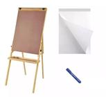 KIT Cavalete Flip Chart Porta Bloco Compacto Duratex Madeira Pinus Natural Ajustável 1,63 ou 1,72 Metros SOUZA 2509 + 1 Bloco Flip Chart 53X80 cm (A1)