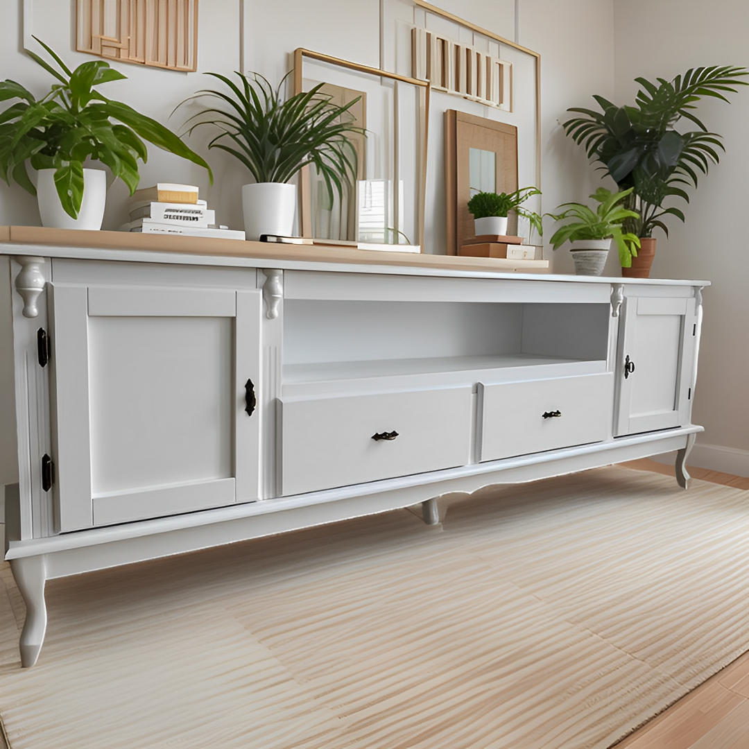 Rack para Sala Pés Luis XV 2 Gavetas 2 Portas e Nicho 60503 Linz Móveis - Laca Branca/Imbuia Glazer