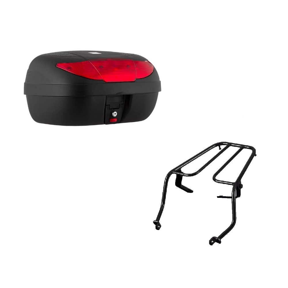Baú Bauleto Caixa Bagageiro 45 Litros Pro Tork + Churrasqueira Suporte Maciço Pro Tork Yamaha XTZ 125 2003 Até 2016