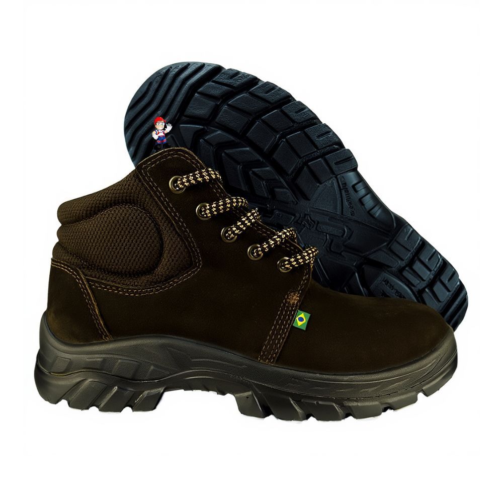 Botina Nobuck Marrom Bico Pvc Solado Em Borracha Bota De Segurança Couro Camurça Epi Proteção Profissional Obras Construção Civil Eletricista Pedreiro Reforma Peão