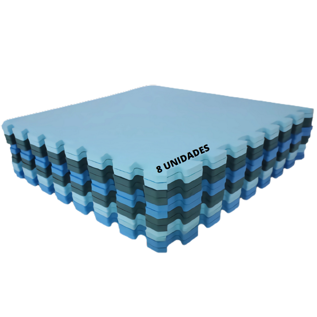 Kit 8 Peças Tapete Tatame Piso Azul Criança Creche Infantil Yoga Ioga Exercício Treino Academia Crossfit 50x50 10mm