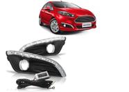 Par Moldura LED DRL Com Friso Aro Cromado Fiesta 2013 a 2017