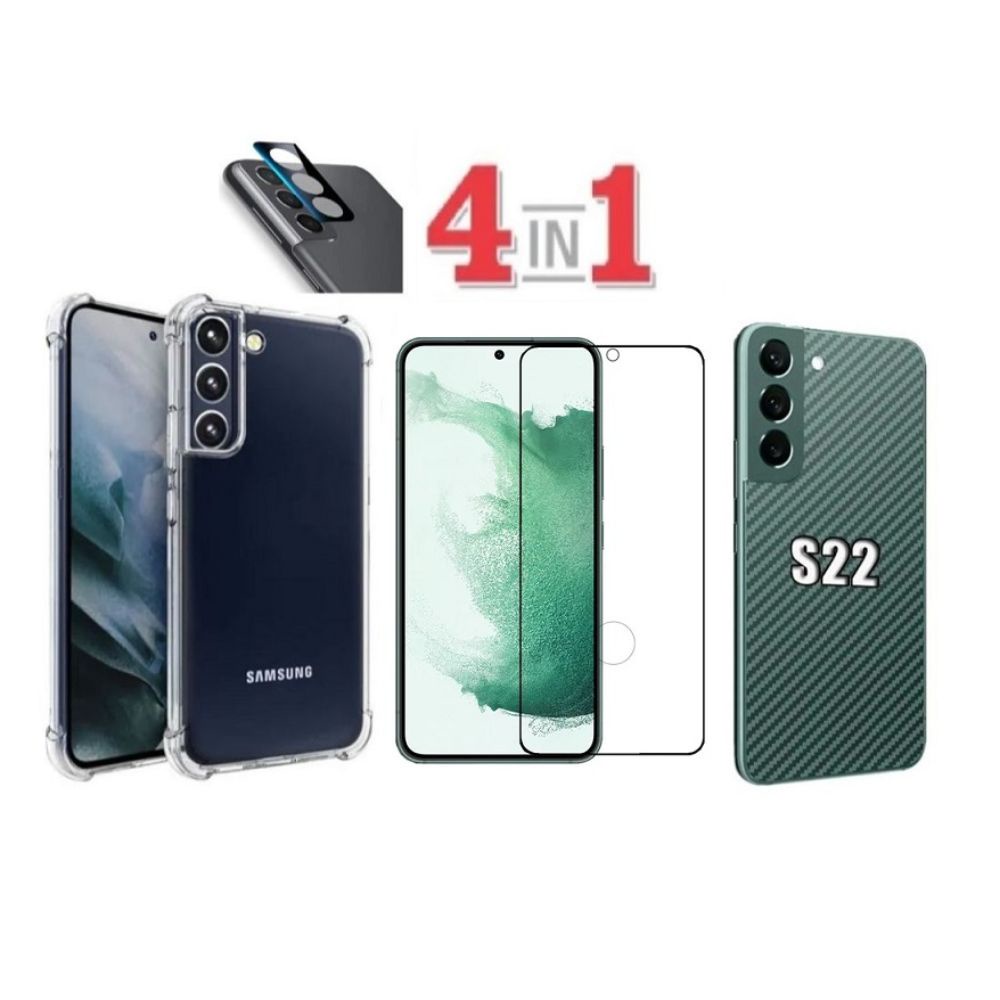 Pelicula de Vidro 3D + Capa Anti Impacto + Pelicula de Camera + Carbono para Samsung Galaxy S22