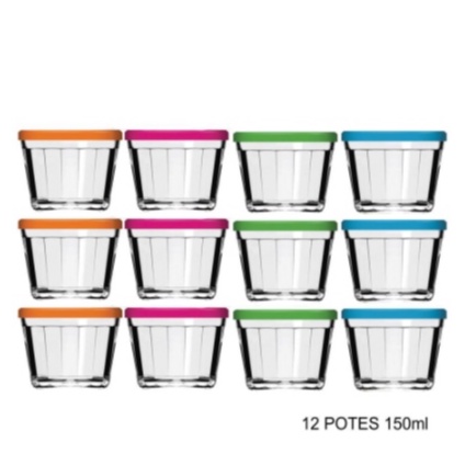 kit 12 Potes Para Armazenamento Tigela de Vidro Americano Cores Sortidas 150ml nadir figueredo