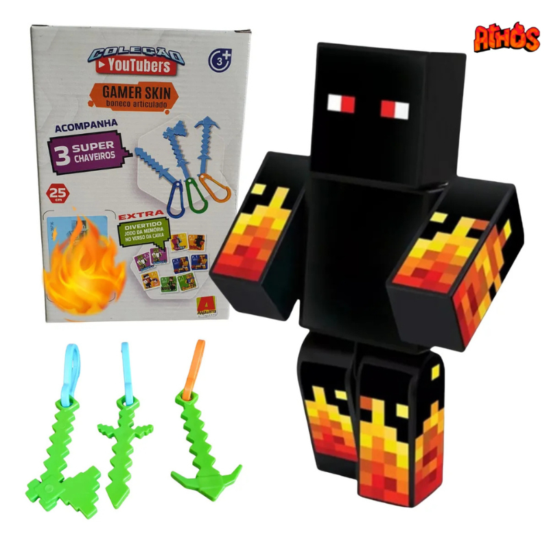 Boneco Athos 25 Cm Articulado Streamers Gamer Youtubrs Com Acessorios Chaveiro e Embalagem com Jogo da Memória no Verso