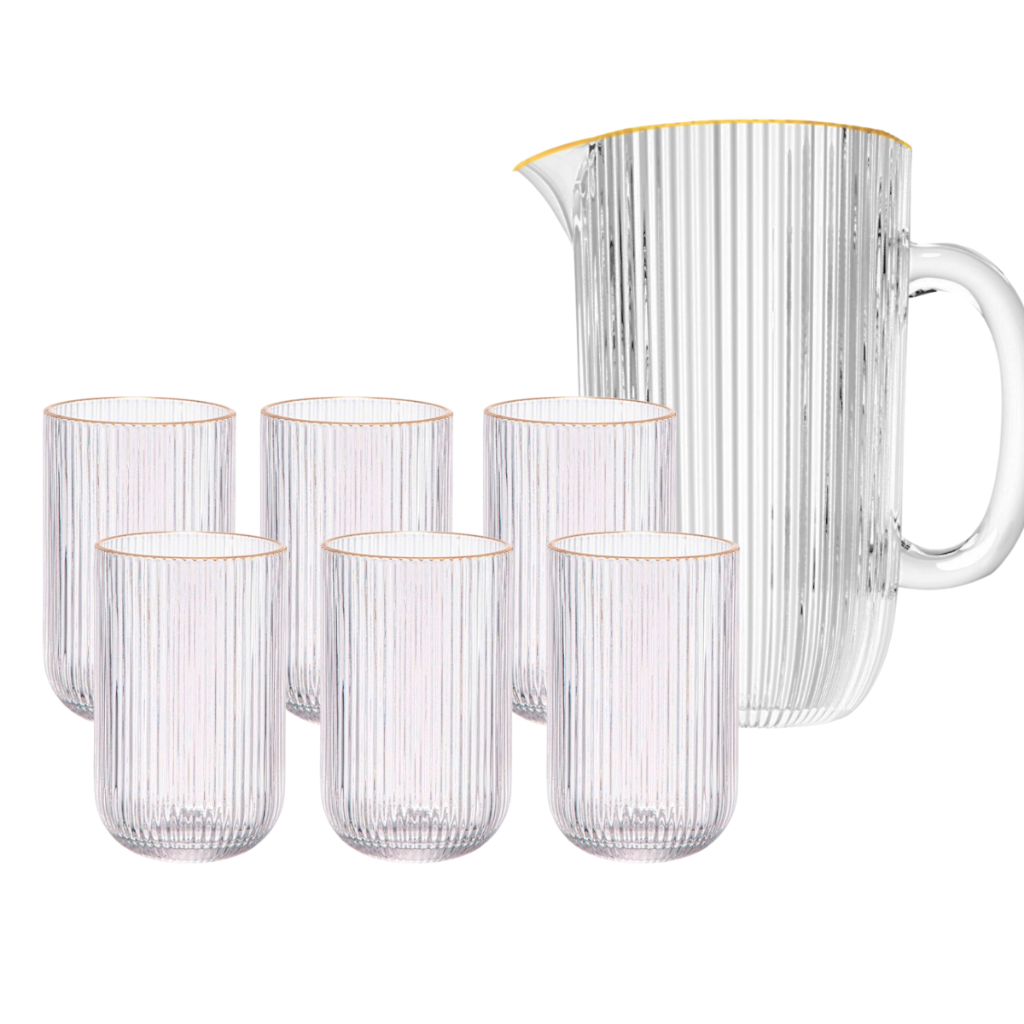 Kit de 6 Copos Cameratta Com Borda Dourda + 1 Jarra Cameratta Com Borda Dourada