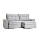 Sofá Canto Chaise Luiza 5 Lugares Retrátil Reclinável 250Cm Mola Bonnel Pillow Suede Cinza - SóSofá