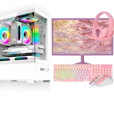 Computador Cpu PC Gamer Completo Branco Intel Core i5 Memoria Ram 16gb SSD 240GB Monitor Kit Gamer Rosa