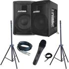 Kit Caixa Som Profissional Ativa Passiva Usb Bluetooth 400w C/ Tripé Cabo e Mic CSX03