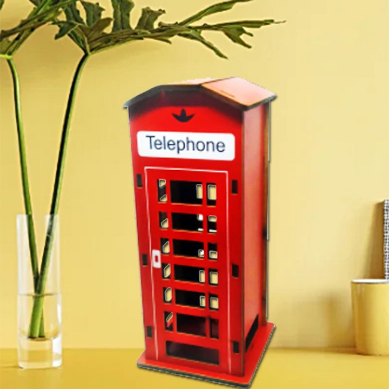 Enfeite Arte Decorativa Cabine Telefonica de Londres Madeira MDF Exclusivo Sala Quarto Escritório Comércio Café