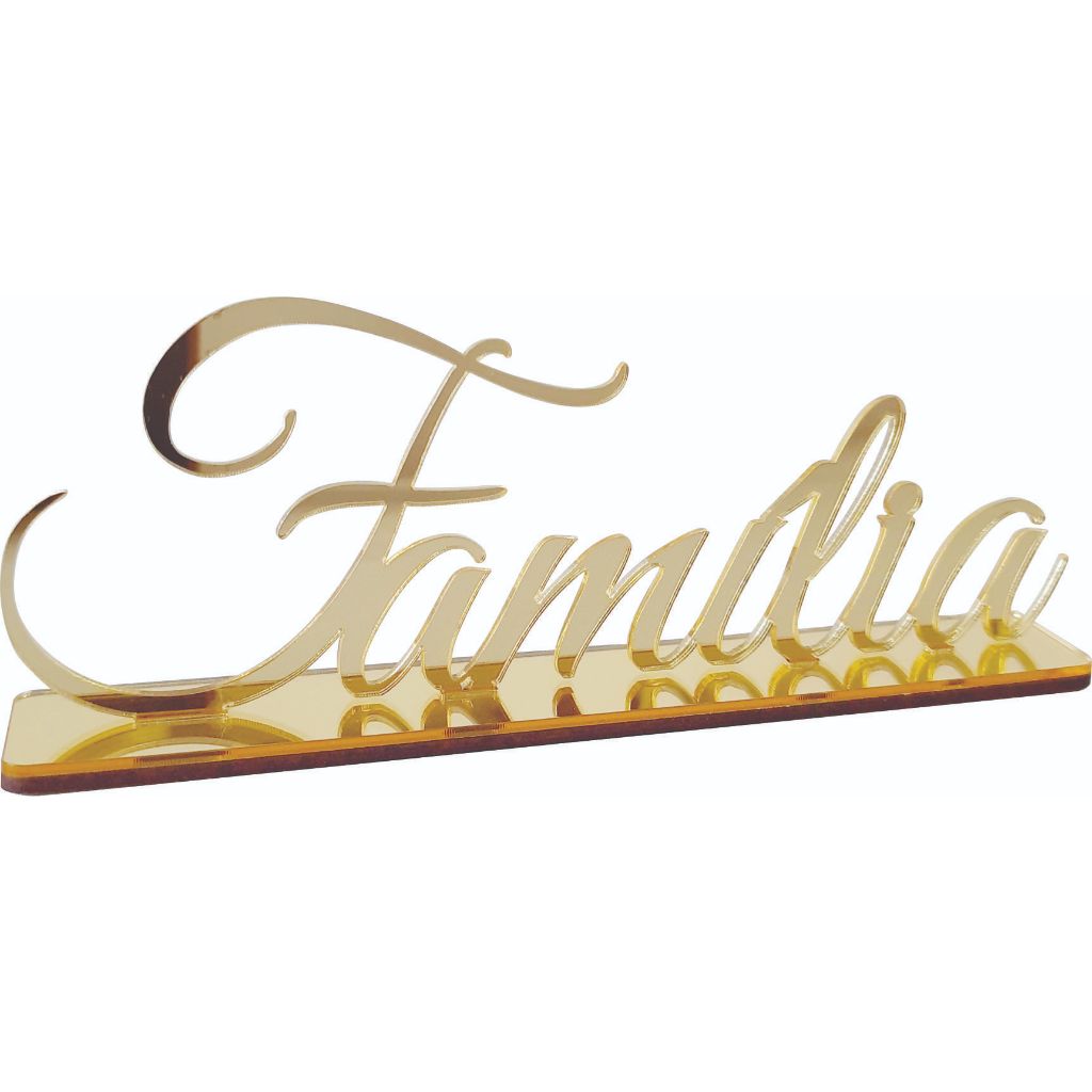 Palavra Decorativa Família - Enfeite de Mesa, Decoração Sala, Cozinha - Acrílico Espelhada Dourada