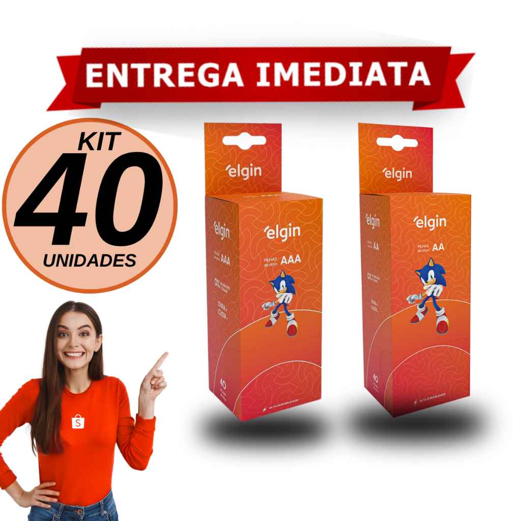 Kit 40 Pilha de Zinco Elgin AAA AA Kit Palito Comum Elgin
