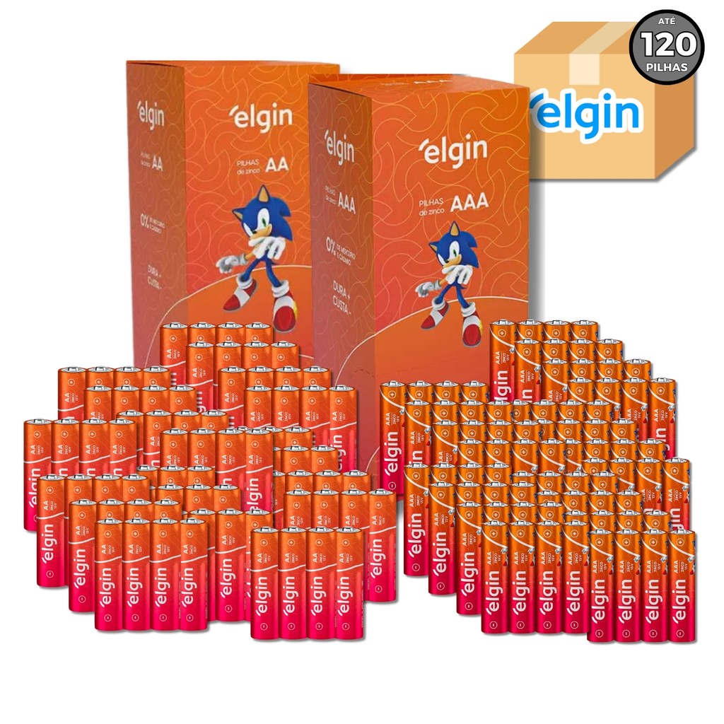 Kit 40 Pilhas Elgin Zinco Carvão AA ou AAA Palito Tubos Com 40, 80 ou 120 Unidades