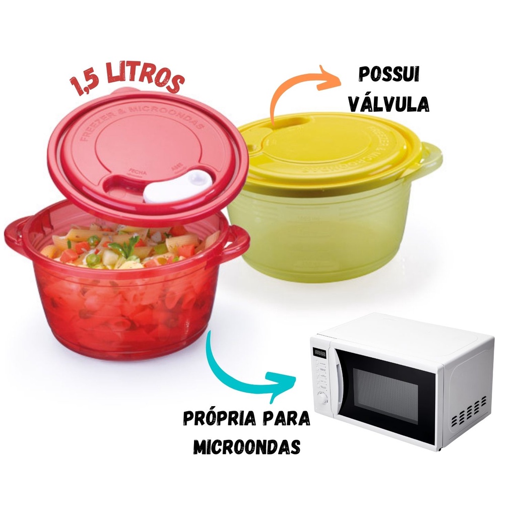 Vasilha de Microondas/Freezer Pote Mini Panela Com Válvula 1,5 Litros Plástico Cores Sortidas