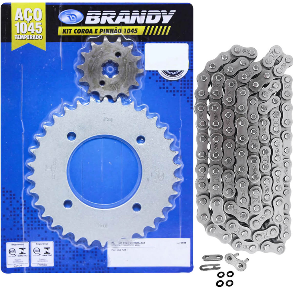 Kit Relação Transmissão Biz 125 (Todos Anos) C/ Retentor Reforçado Aço 1045 Brandy
