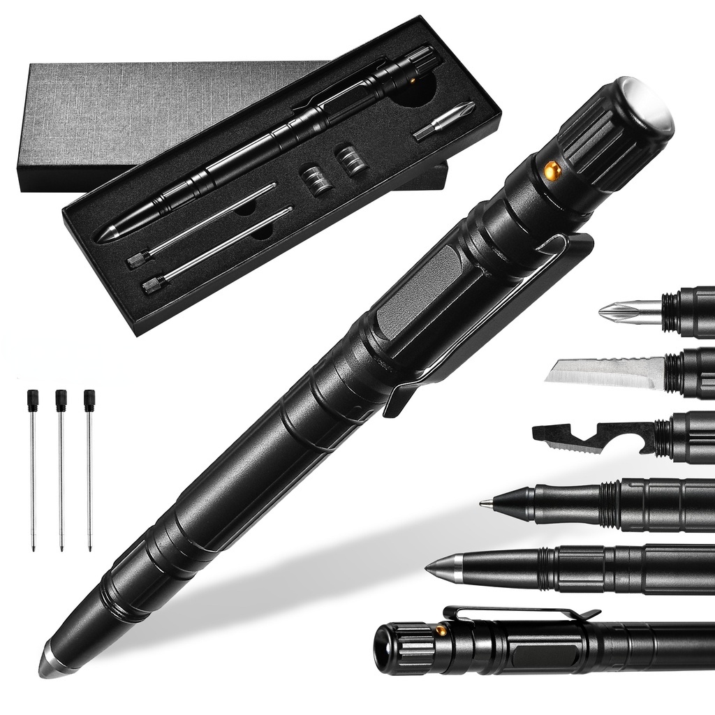 Caneta Tática multi-Função De Autodefesa Em Liga De Alumínio Com Luz LED Disjuntor De Janela Portátil Ferramenta De Sobrevivência Ao Ar Livre