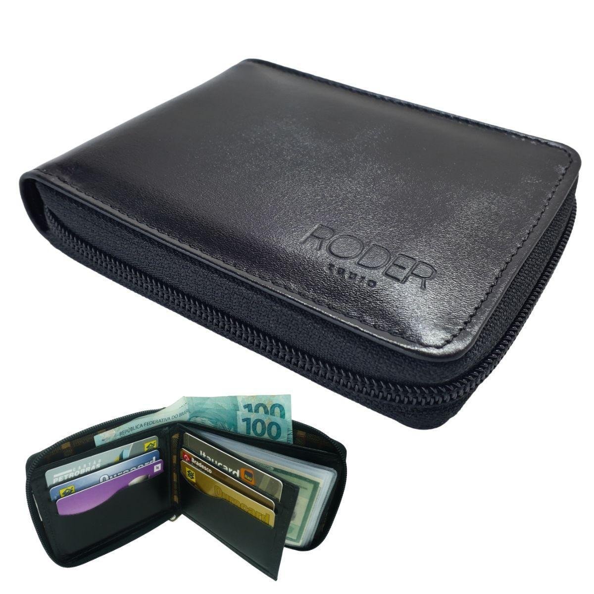 Carteira Masculina De Couro Legítimo Zíper Grande Completa 410