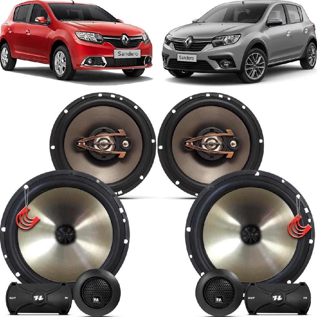 Kit Alto Falantes Dianteiros + Traseiros Renault Sandero 2015 até 2021 - Hurricane Platino 640w