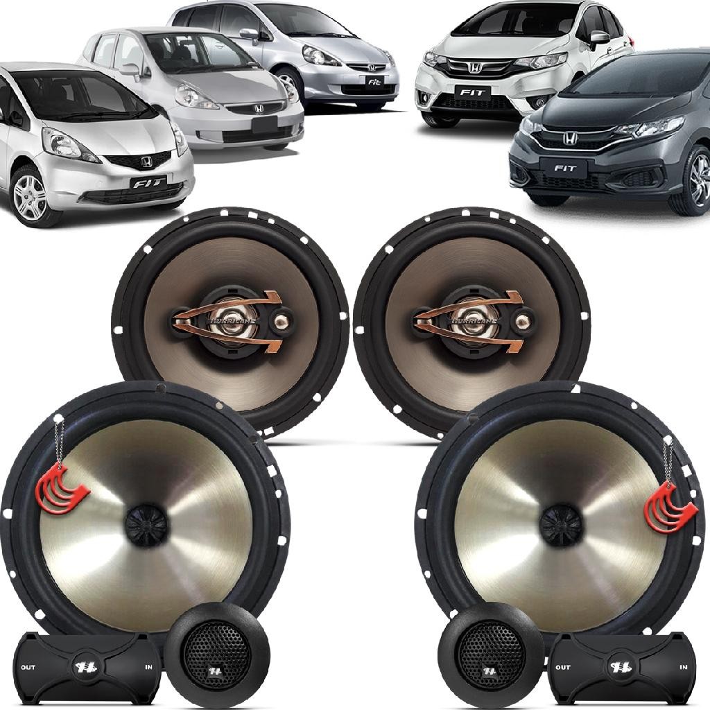 Kit Alto Falantes Dianteiros e Traseiros Honda Fit 2004 até 2021 - Hurricane Aurum 480w