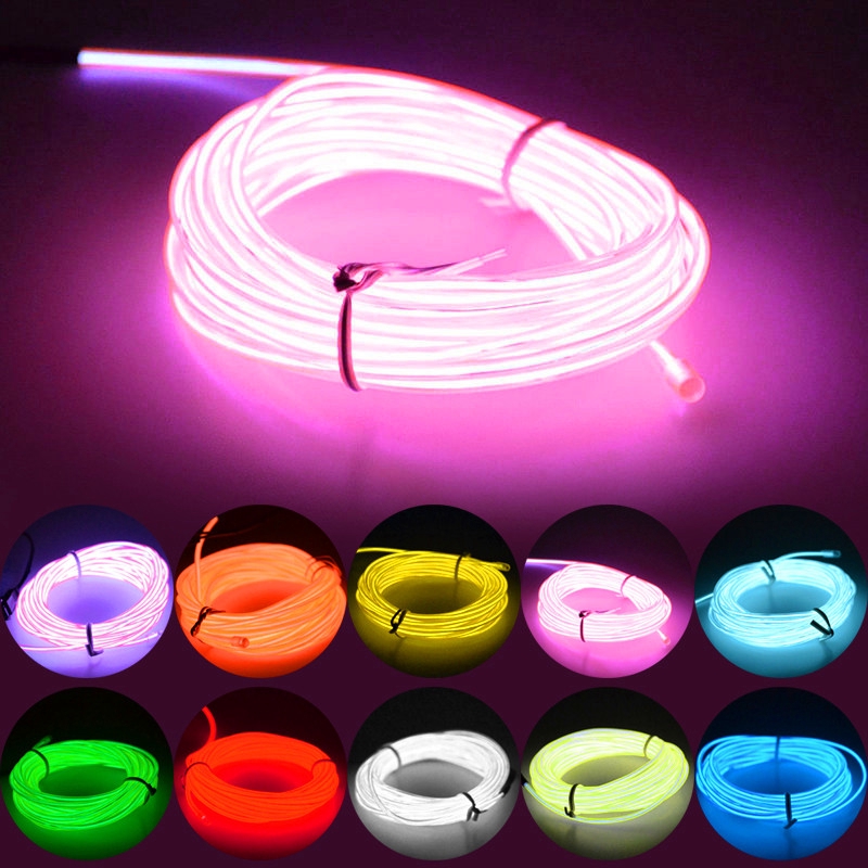 Fio de Luz LED Flexível com 5m / Tubo Luminoso de Fio EL para Decoração de Natal/Carro
