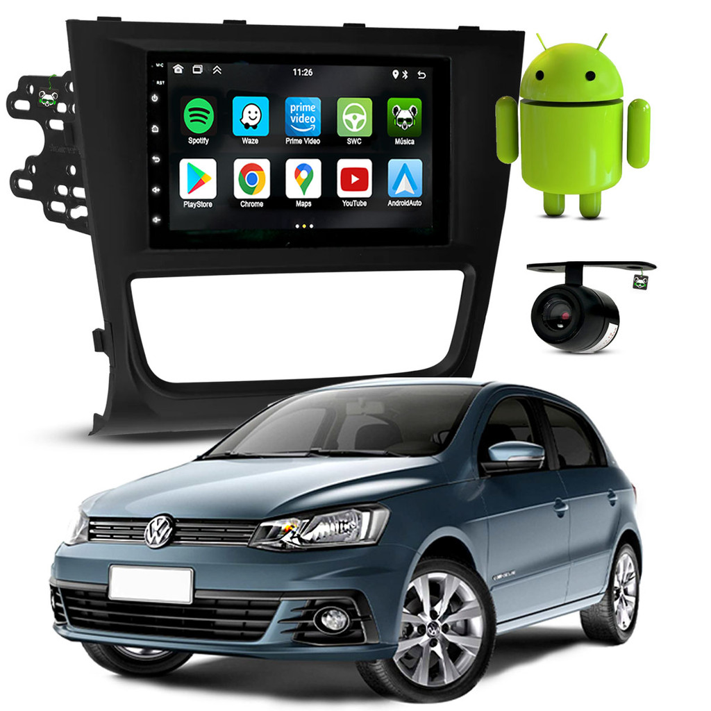 Kit Central Multimídia Tela De 7 Polegadas + Câmera de Ré + Moldura 2 Din Gol Voyage G5 2009/2012 Saveiro G5 2010/2013