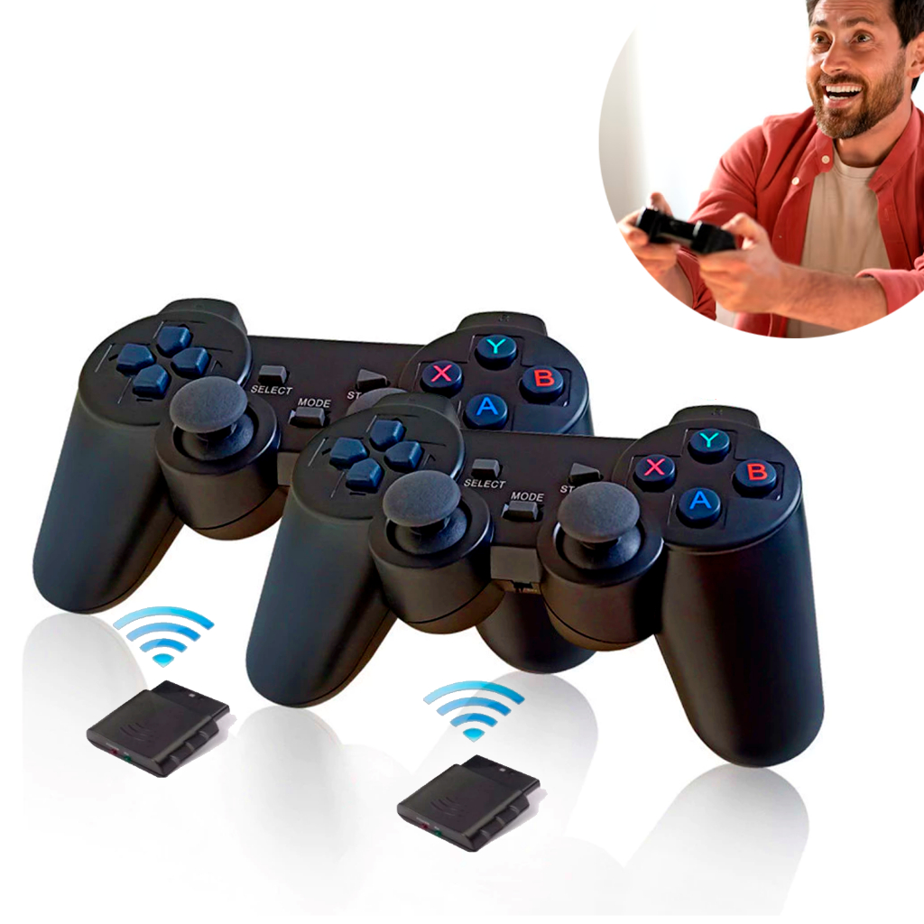 Kit 2 Controles Ps2 Sem Fio Joystick Console Analógico Manete compativel Playstation Video Game