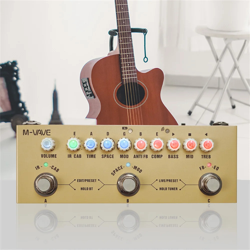 Pedal De Efeito M-vave Pedaleira Cube-baby Ac Creme Acústica Violão Processador Multi Efeitos