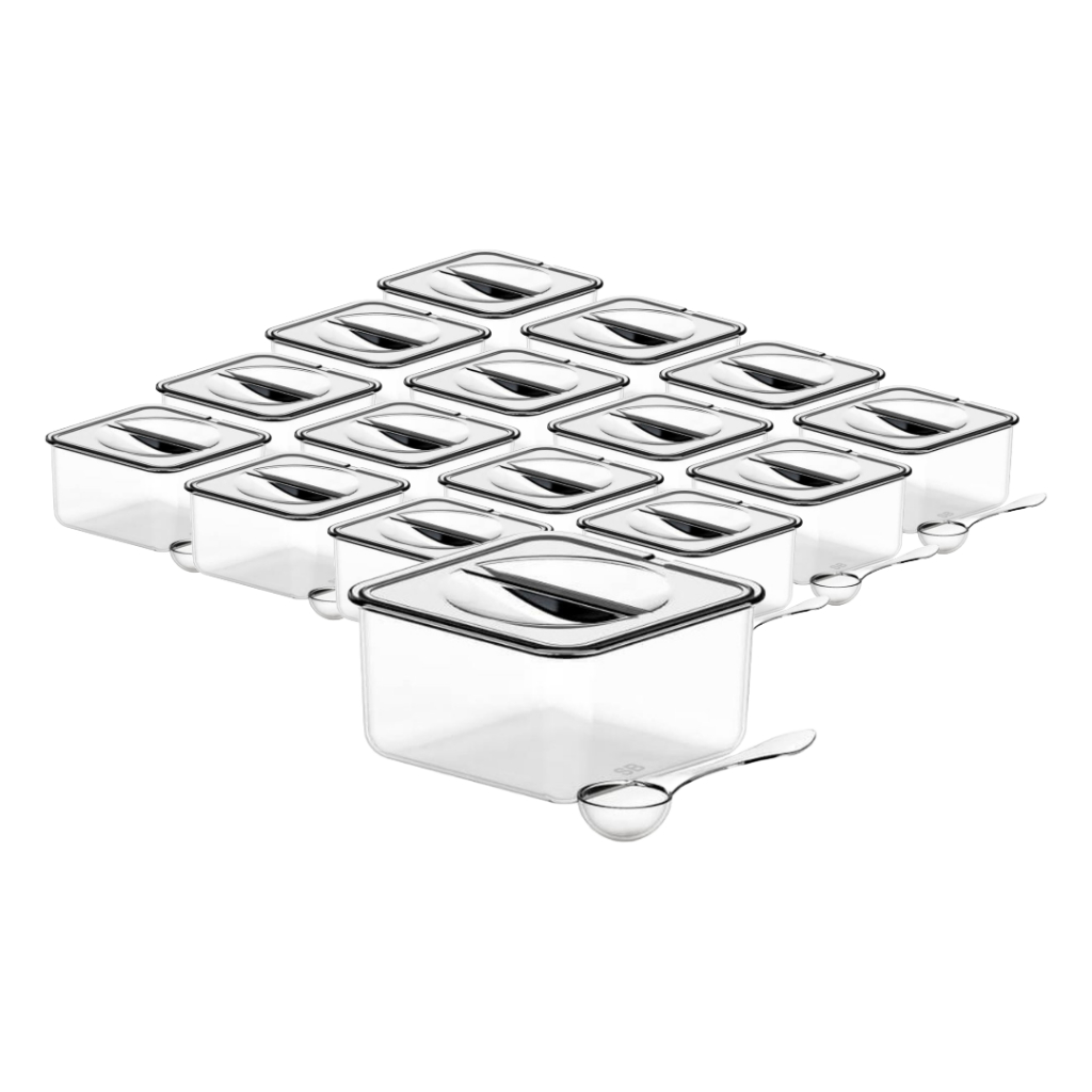 Kit Cuba Expositora Acrilico com Colher e Tampa - Self Service Sorveteria, Açaiteria, Buffet - 1,5L