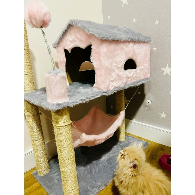 Arranhador Gato Castelo com Rede Bases Grande + Brinquedos