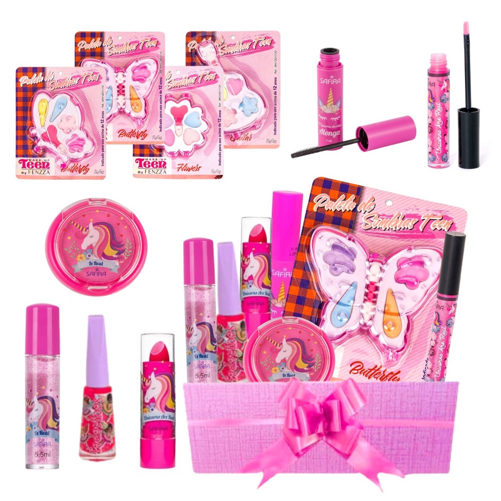 Kit Combo Maquiagem Infantil com Esmalte, Gloss e Rímel - SAFIRA