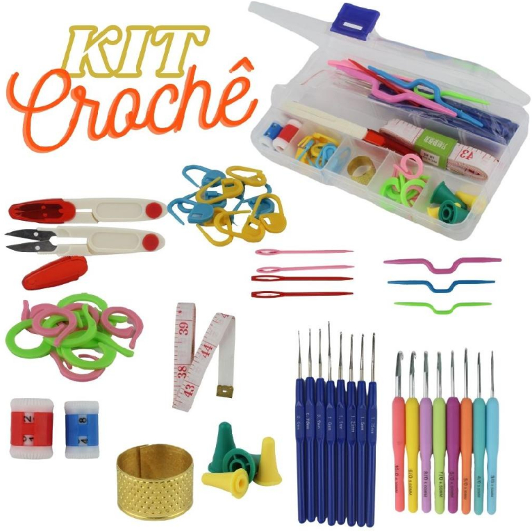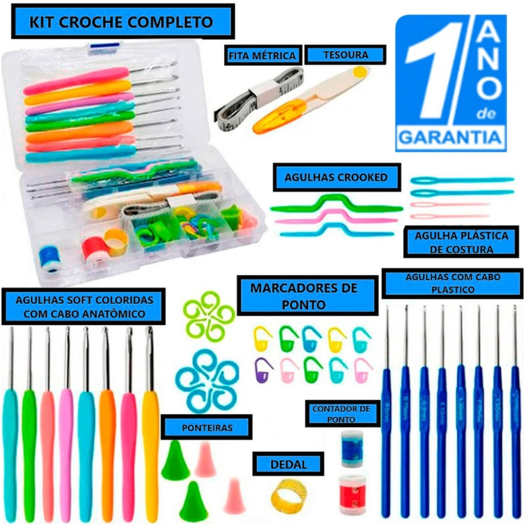 Kit Croche e Amigurumi com 16 agulhas Completo + Acessórios + Estojo Organizador