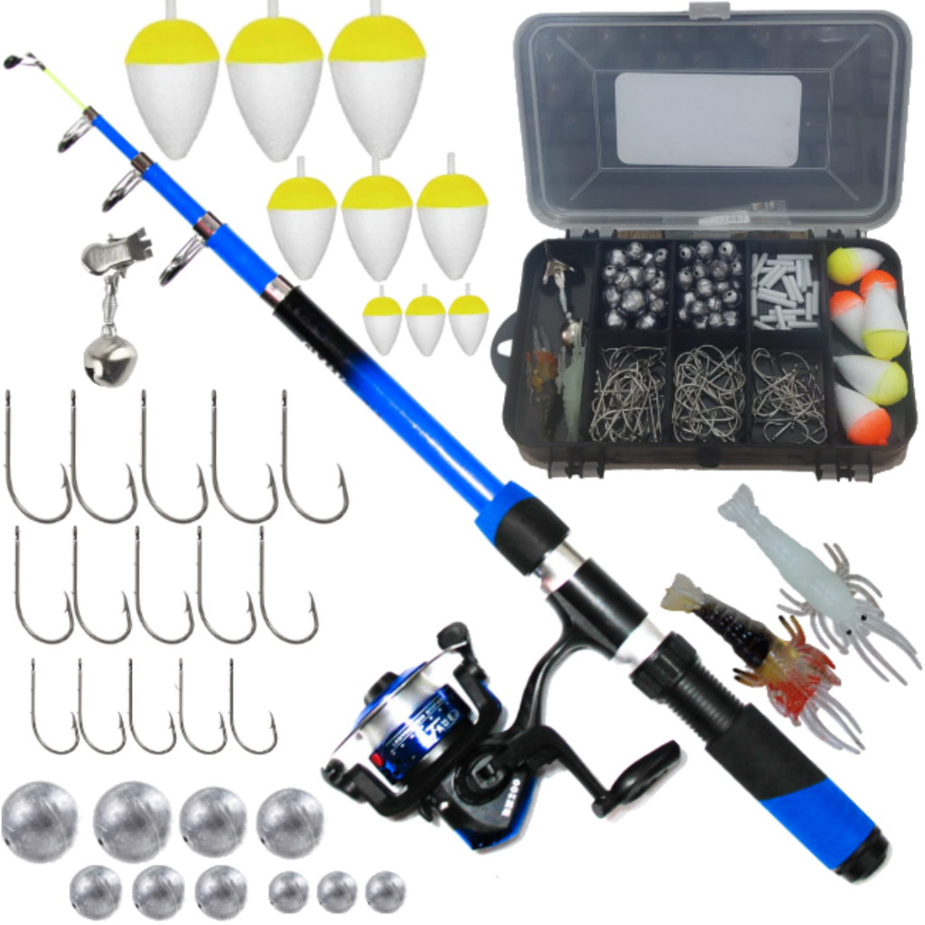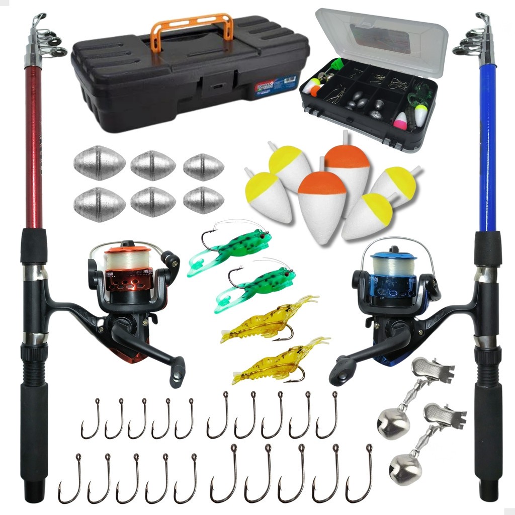 Kit De Pesca Completo Barato 2 Varas Telescópica e 2 Molinetes Leve Linha Estojo E Maleta Com Acessórios Quite Pescaria