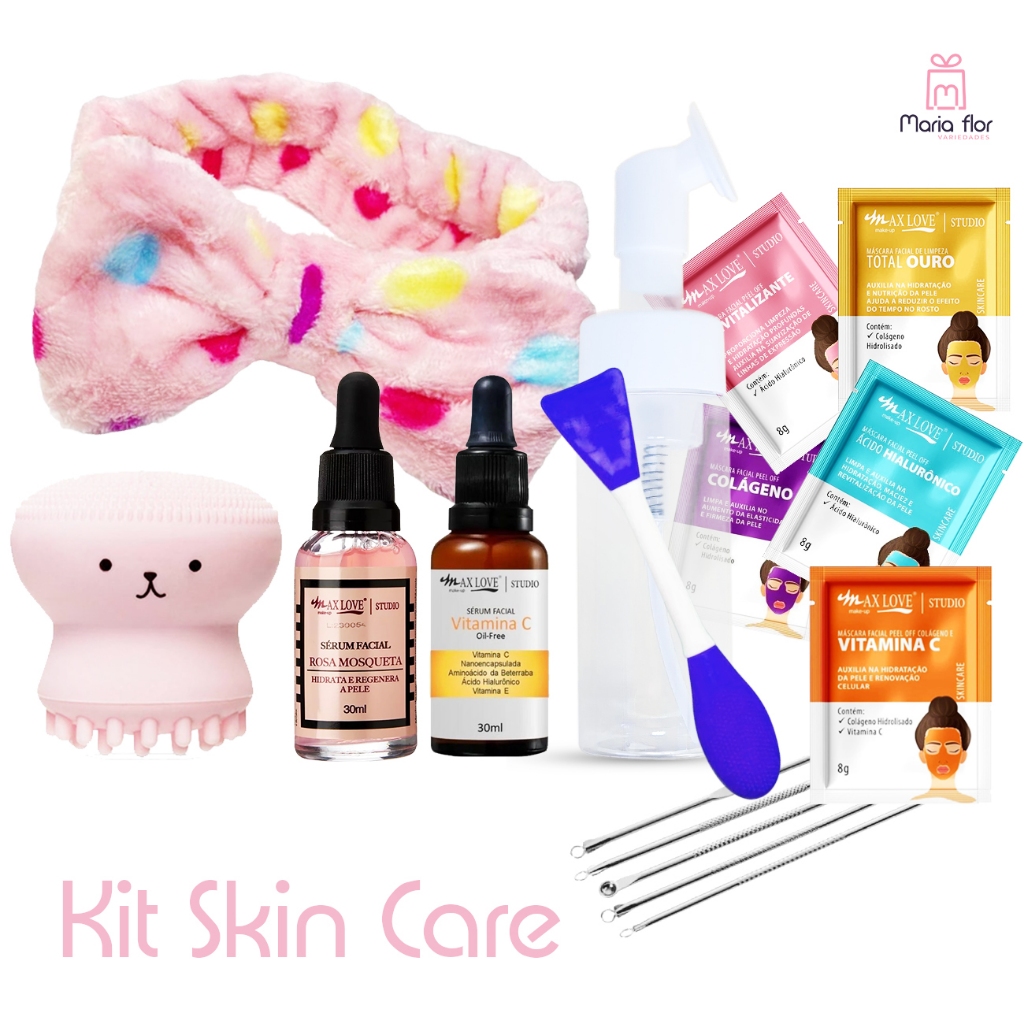 Kit Skin Care Completo 21 Itens MaxLove Acessórios Facial Cuidados com a Pele Rosto Todos os Tipos