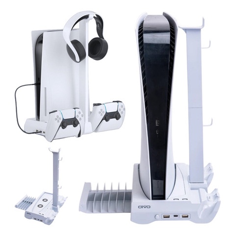 Base Vertical + Carregador + Suporte Fone + Rack Para 12 Jogos Ps5 Playstation 5