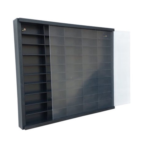 Expositor para 50 nichos 1/64 PRETO com tampa em acrílico.
